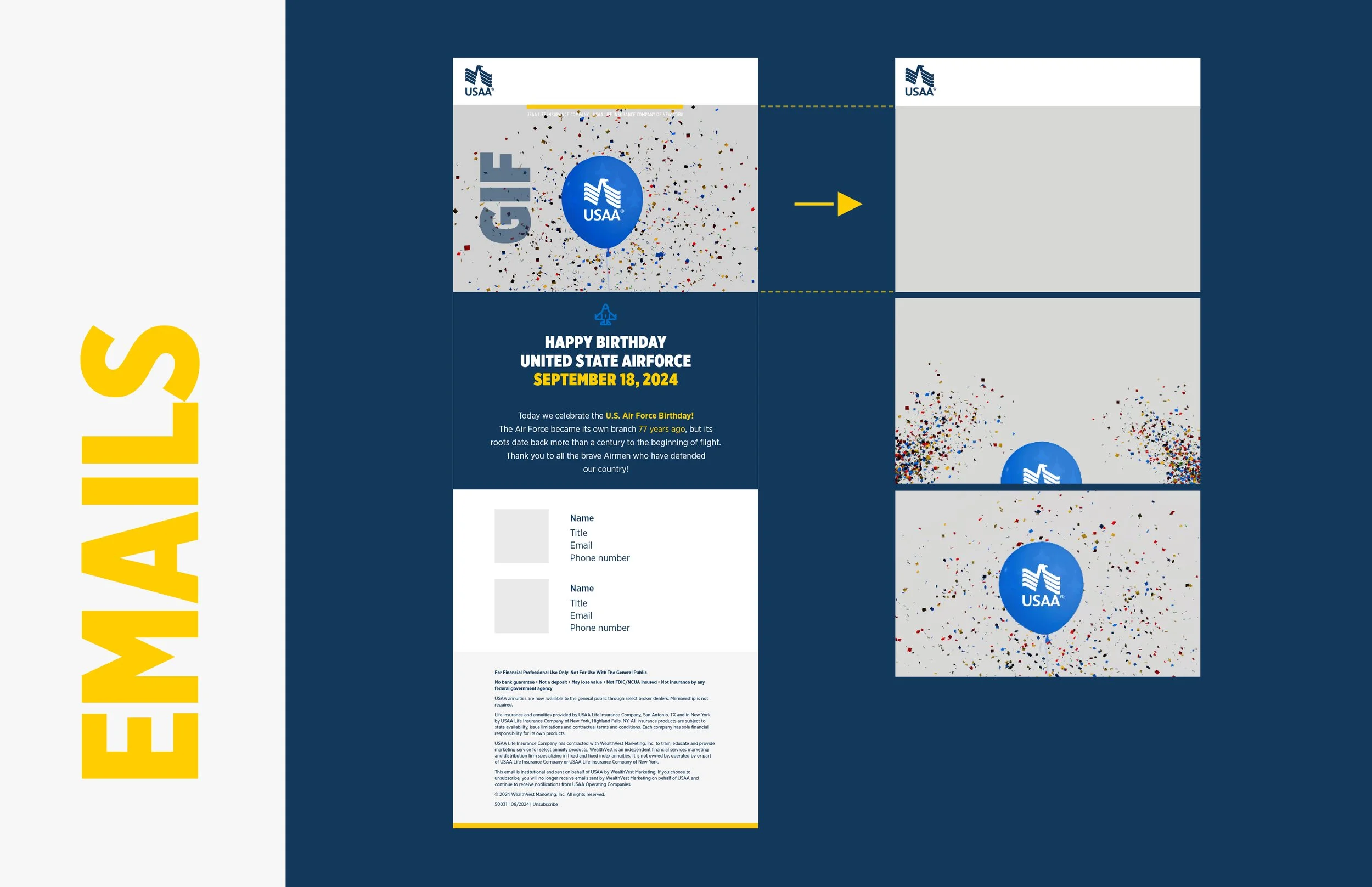 USAA is one of WealthVest’s primary carrier partners. I adapt both WealthVest and USAA-provided content to match USAA’s brand guidelines and create original graphics, GIFs, video assets, promotions, and social media posts to support their marketing goals.